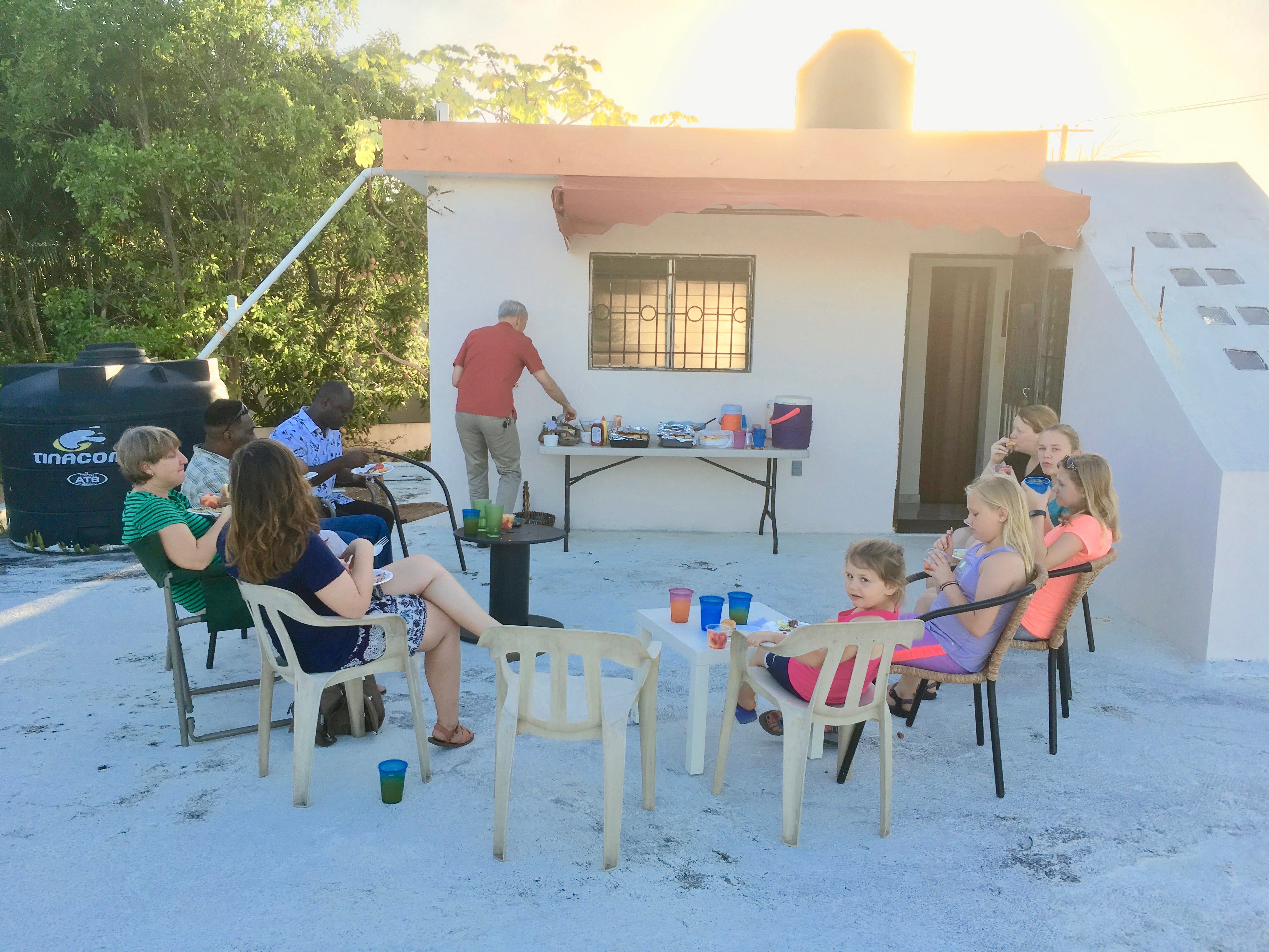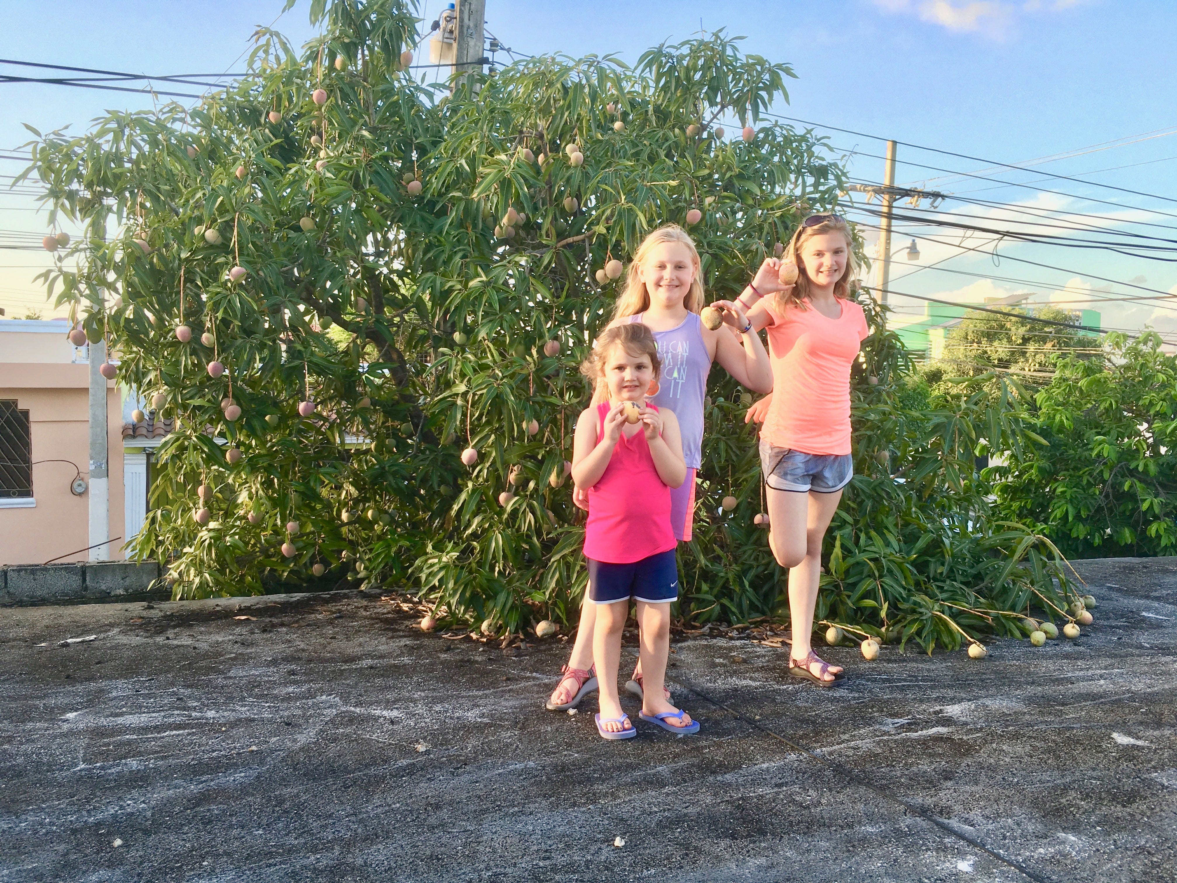 After we finished with the small group Bible study, Steve and Sandra had us over to their house, along with Megan (one of the young women we are sharing the apartment with), and Troy and Jackson (the World Renew supervisors from Haiti). They have a beautiful place and served us a wonderful meal. We had the opportunity to each supper on the roof of their house, while sitting in the shade and feeling the cool breeze blow. It was great! Our whole family had a blast. The girls had a bunch of fun playing girly games (at least that's what I call them) and Rachel and I enjoyed the conversations with Steve, Sandra, Troy, Jackson, and Megan. It was the perfect way to cap off the day. Steve even helped the girls pick some fresh Mangos from the trees by their house.