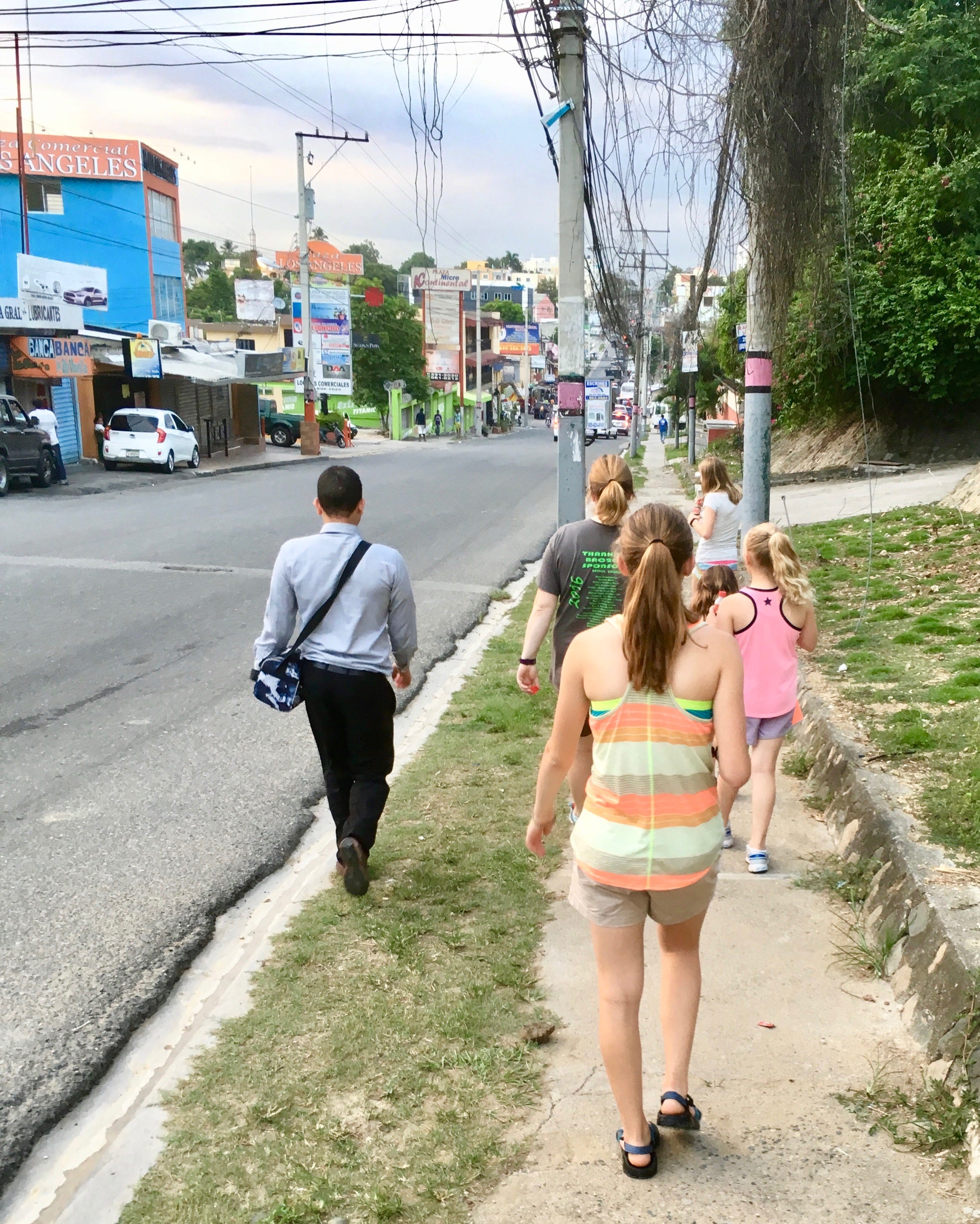 That's been one of the bigger struggles for us so far. We are very used to being busy and living on a farm in the country. Now we find ourselves in the city, with a lot of time on our hands. That's a big change. We also don't have access to a vehicle to take off whenever we want and there's not much within walking distance of our apartment. Cabin fever can easily creep in and we can begin to feel "trapped." So, since we were starting to feel "cooped up," and everyone was getting restless, we decided to go for a little walk just to see what we could see. We walked out to the main road and found a little store where we bought everyone a small bottle of pop for 10 pesos (about $.25). I'm not a big fan of walking in cities in general, however, I think Rachel and the girls enjoyed getting out a bit and walking around.