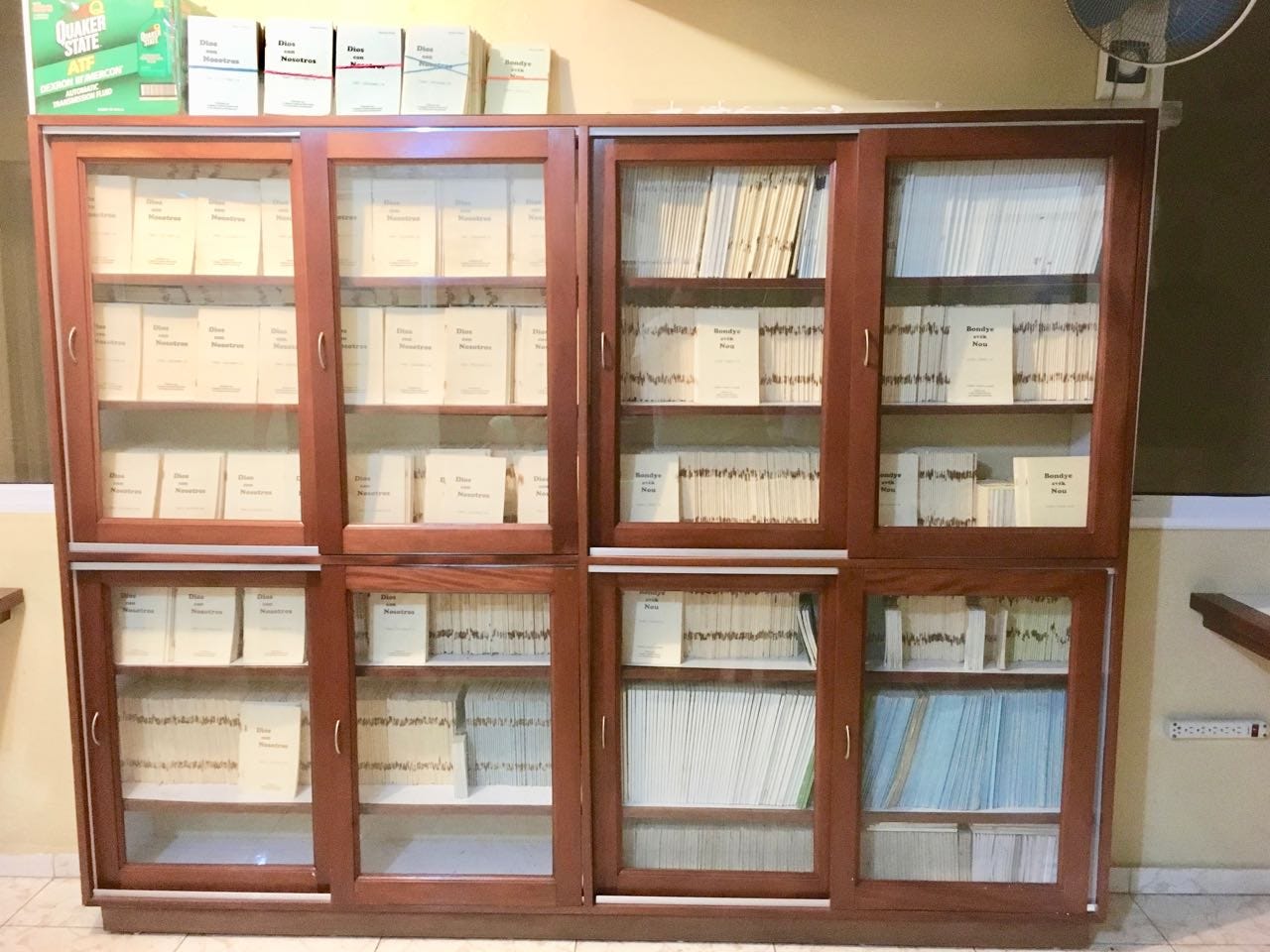 We started off the day with a project in the ministry center. A couple weeks ago, Steve showed me a bookshelf full of Sunday School material that needed to be sorted and organized before our trip finished. I told him we could take care of that. The kicker was that we needed to have power in order to do the sorting because we needed lights. So, we've been waiting for the combination of free-time and power for the past couple weeks. This morning was the morning.......at least for a little bit. We pulled every book out of the bookcase, sorted them, packaged some, and placed the rest back in the bookshelf. I wish I would have taken more pictures this morning, but I was busy working. The only picture I got was of the organized bookshelf. However, the power went out partway through the process. So, we finished up by the light of a cellphone flashlight. The end product was satisfactory and everyone enjoyed doing it. So, it was a good way to start the day.