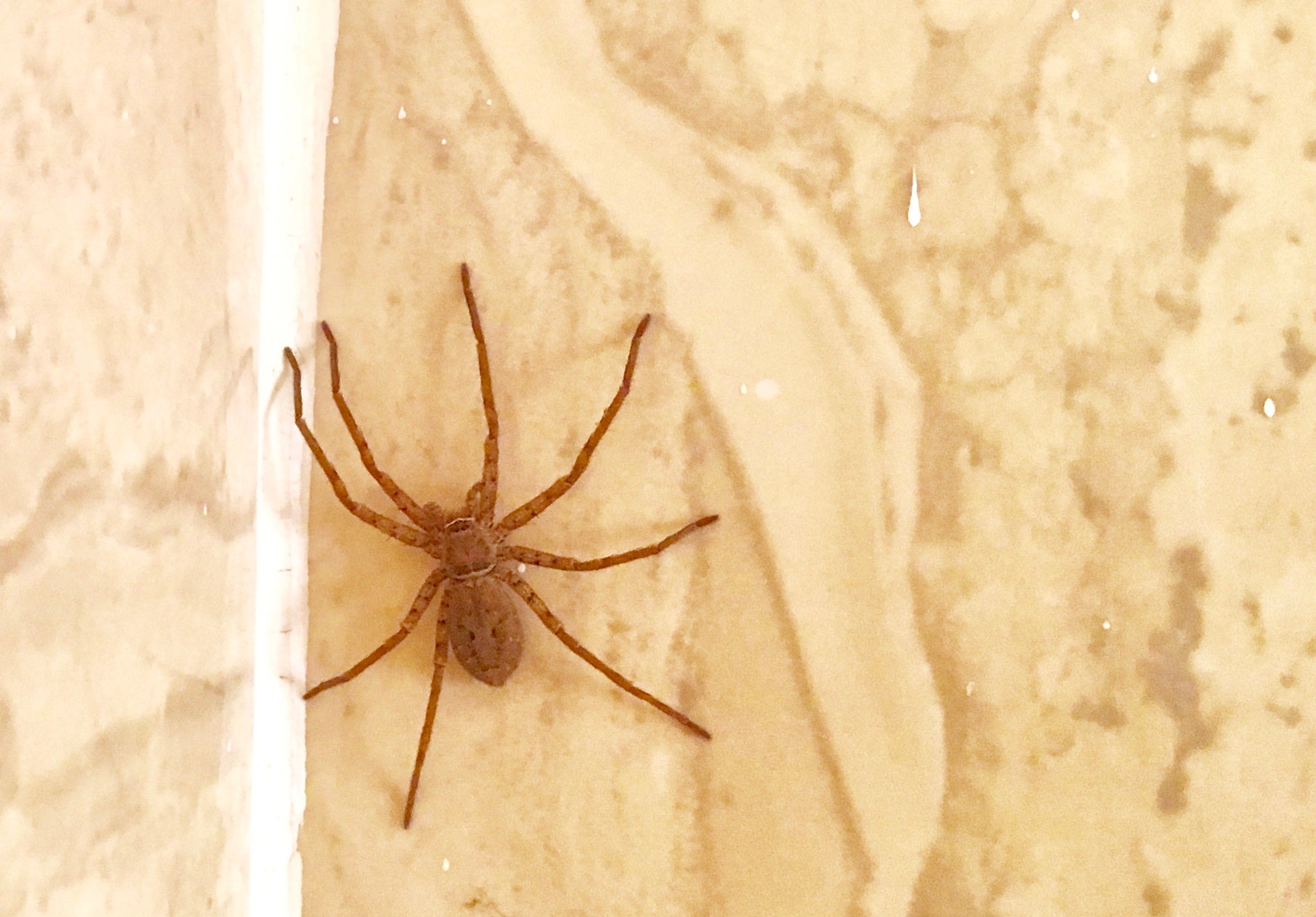 We also had a bit of a ruckus at one point this morning, when this "little" guy came crawling up the bathroom wall while one of the girls was in there. There was a loud scream and then some running.